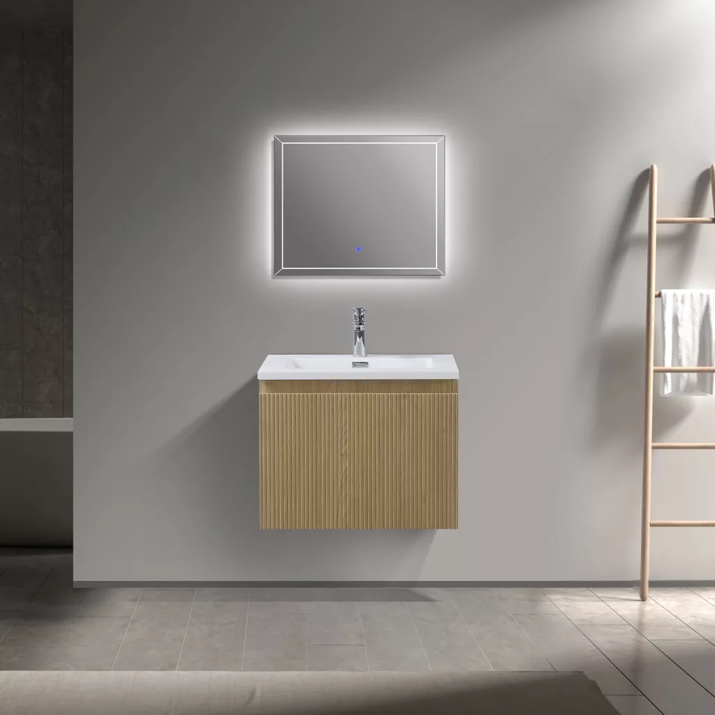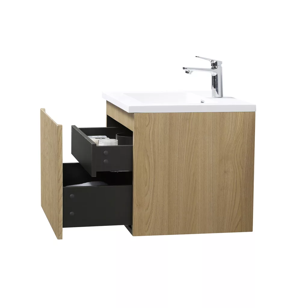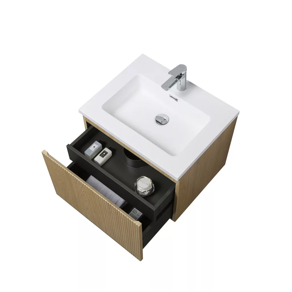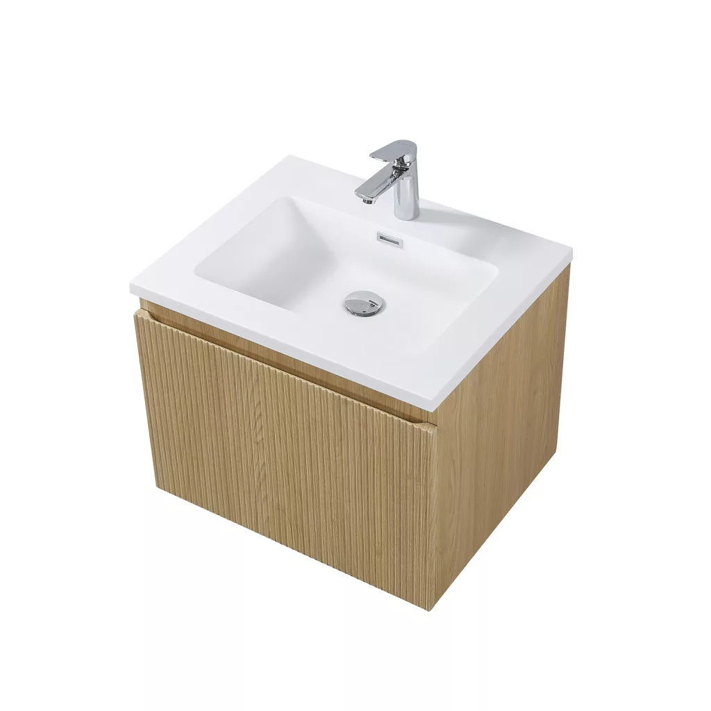 1 fiókos mosdószekrény, melamin fautánzatú felülettel, függőlegesen bordázott előlappal